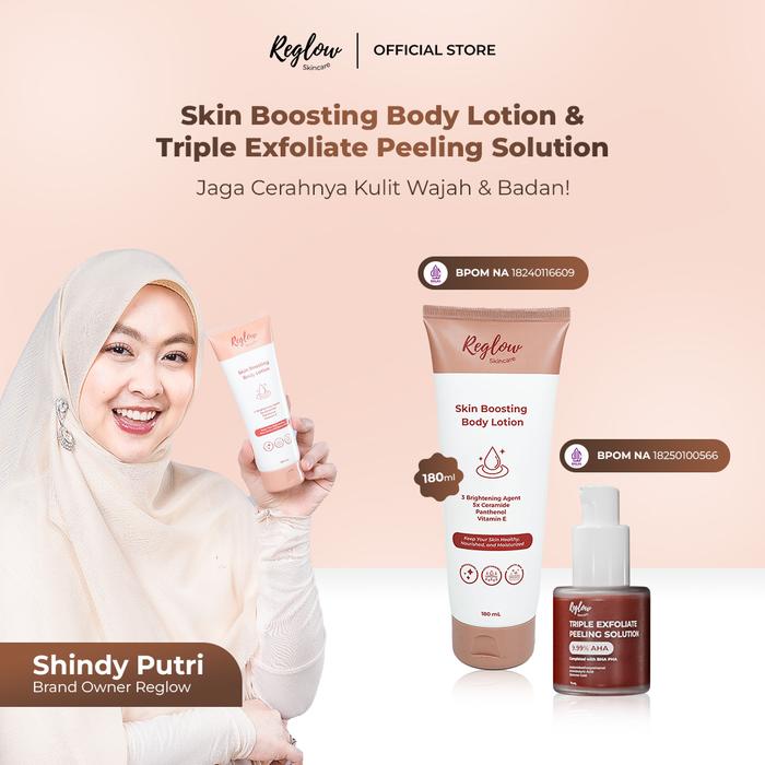 Reglow Skin Boosting Body Lotion & Triple Exfoliate Peeling Serum - Jaga Cerah Kulit