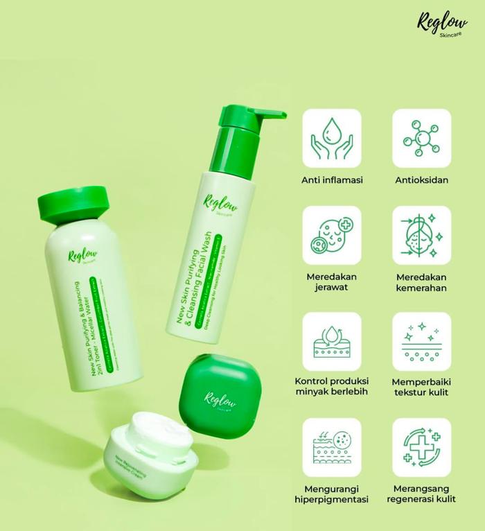 Reglow Skincare Paket Glowing Skin Treatment Basic - Facial Wash, Toner & Micellar Water 2 in 1,