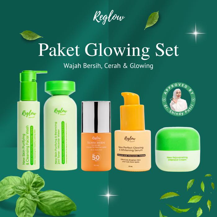 Reglow Paket Glowing Set Pemula untuk kulit berjerawat, flek hitam, komedo, kusam dan berminyak dan
