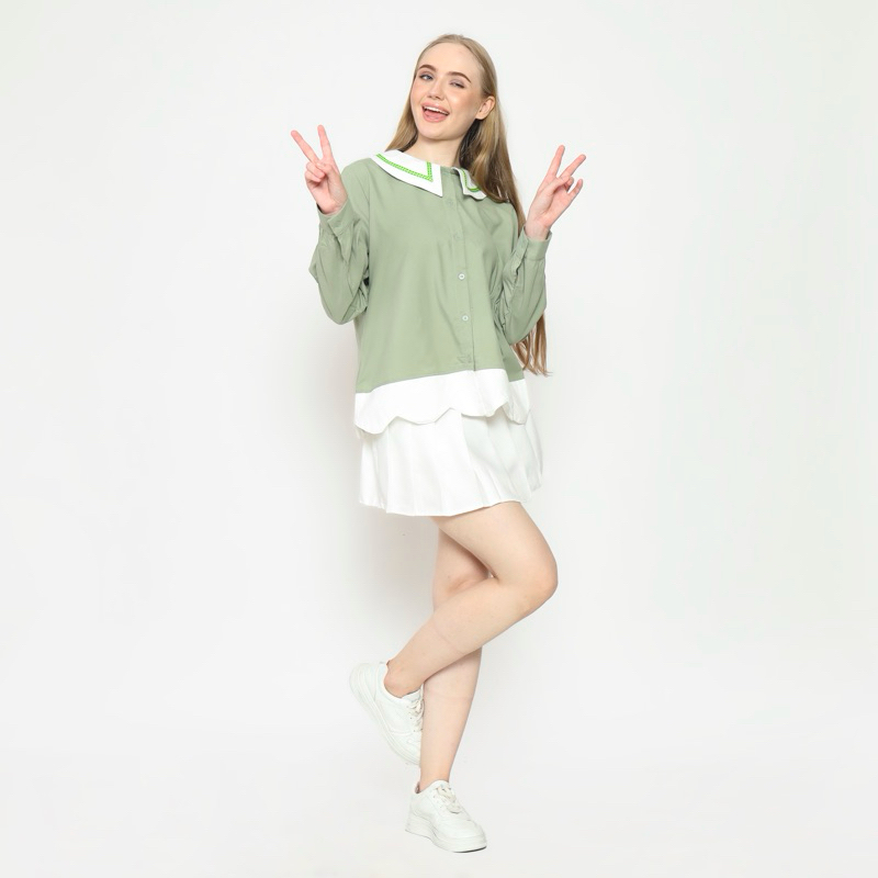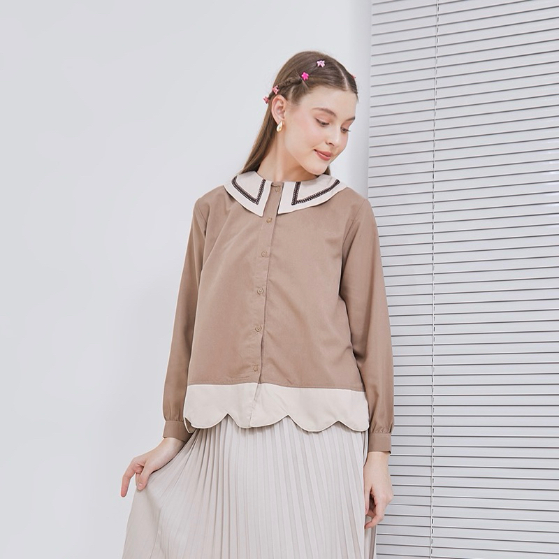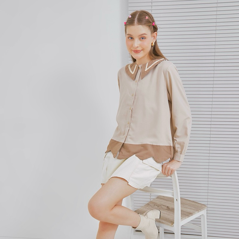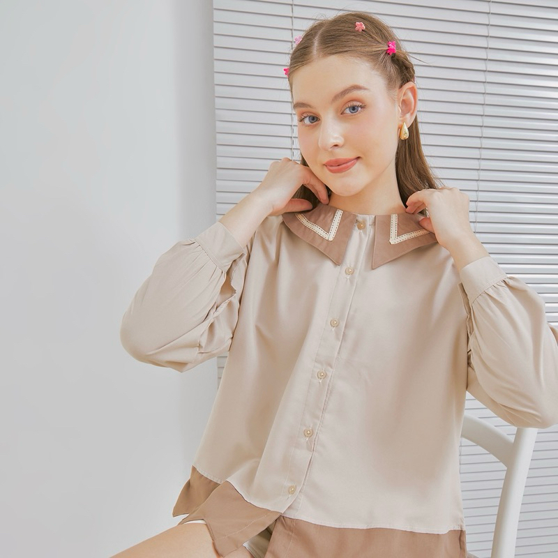 [ Senchi ] - Yumeko Two-Tone Shirt / Kemeja Halus Wanita Dua Warna / Atasan Kemeja Wanita Style Jepang Korea
