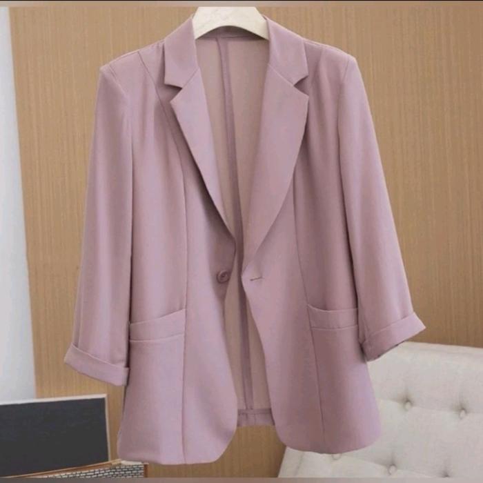 Blazer Kemeja Kerja Jumbo S M L Xl Xxl Xxxl 5L Cardigan Wanita Cardi Blezer Rompi Bahan Premium - Dustypink, S