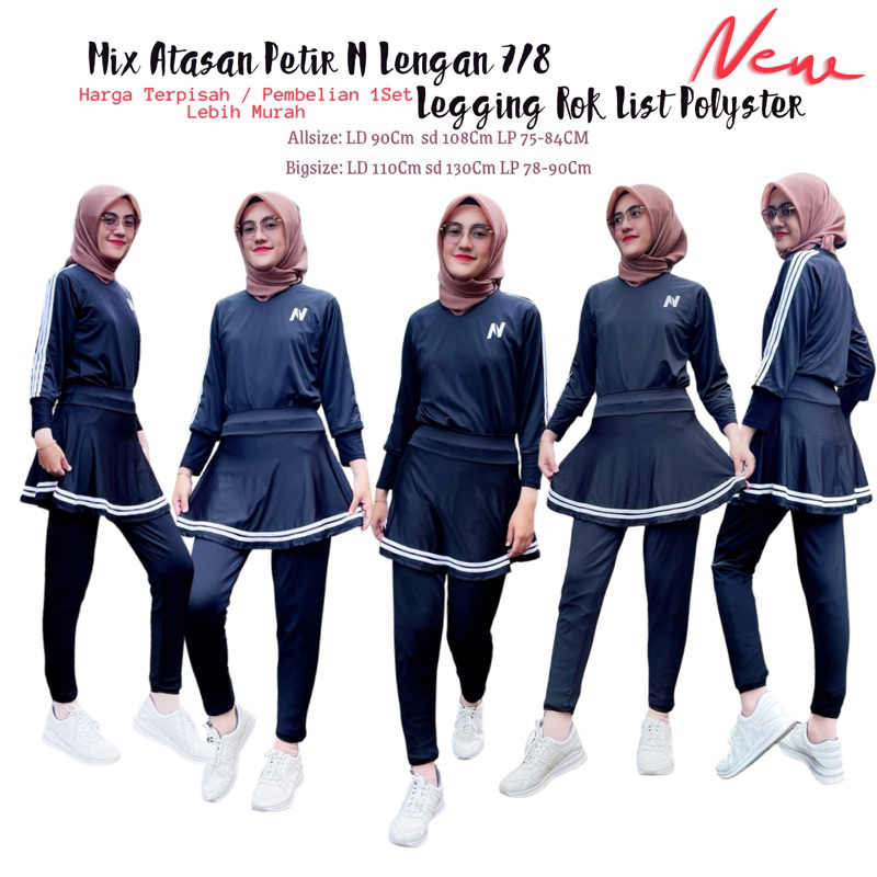 Mix Atasan Baju Senam N Petir dan Legging Rok Senam Model List Bahan Polyster Spandek Allsize dan Bigsize Untuk Wanita O