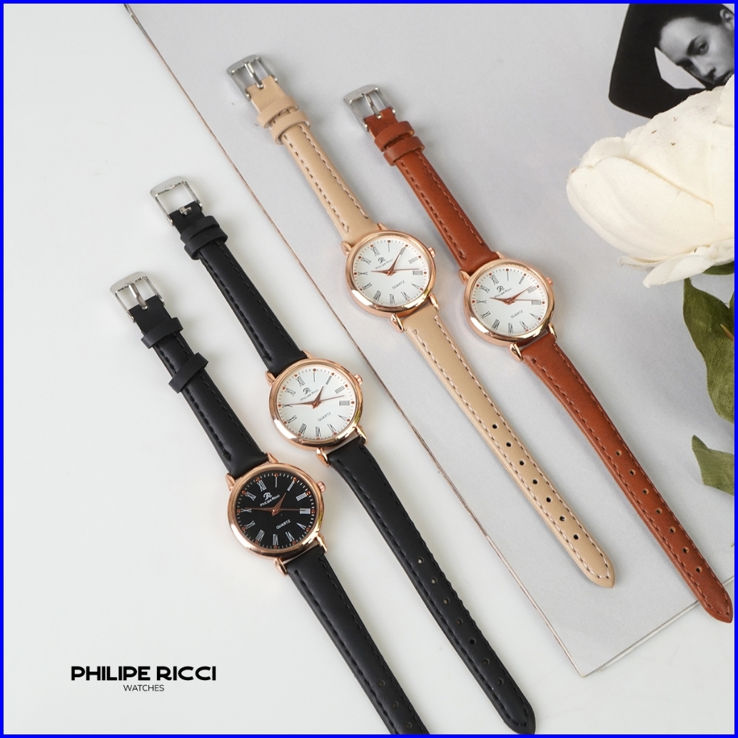Philipe Ricci Jam Tangan Wanita Kulit Hitam Bulat Kecil Terbaru Original 6989 Women Watches Free Box
