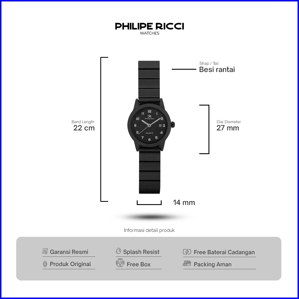 Philipe Ricci Jam Tangan Wanita Kecil Rantai Kekinian Bulat Strap Tali Besi Model Kekinian Simpel Elegan 6409 Woman Watc