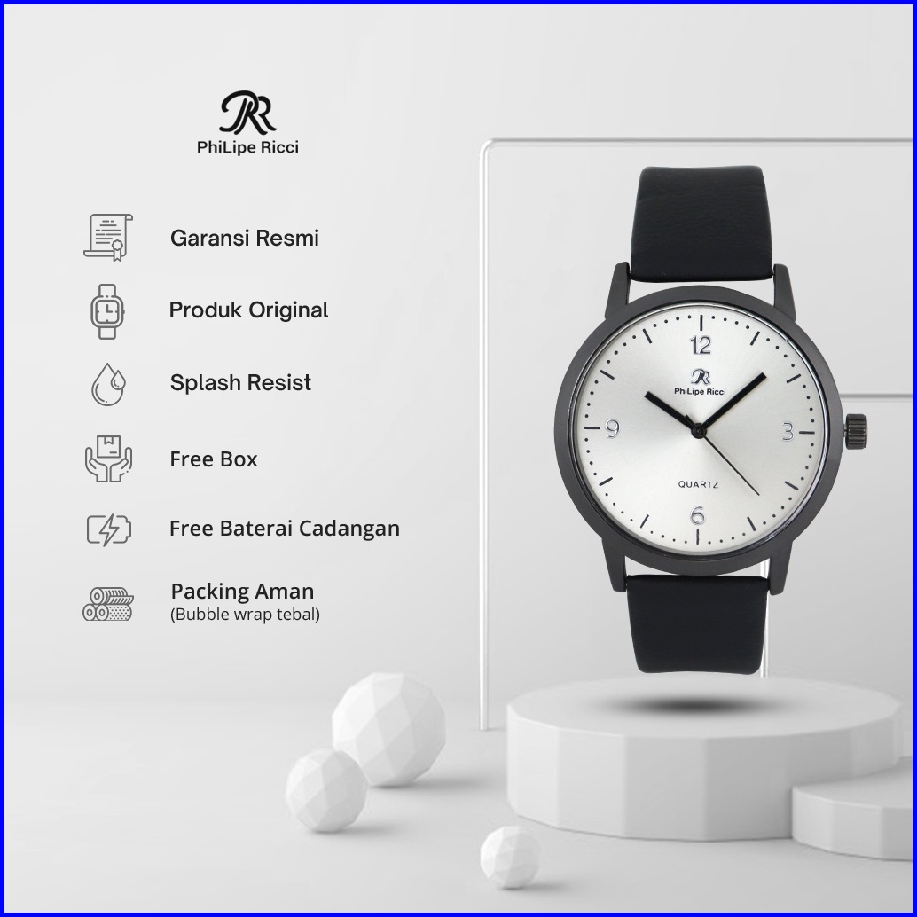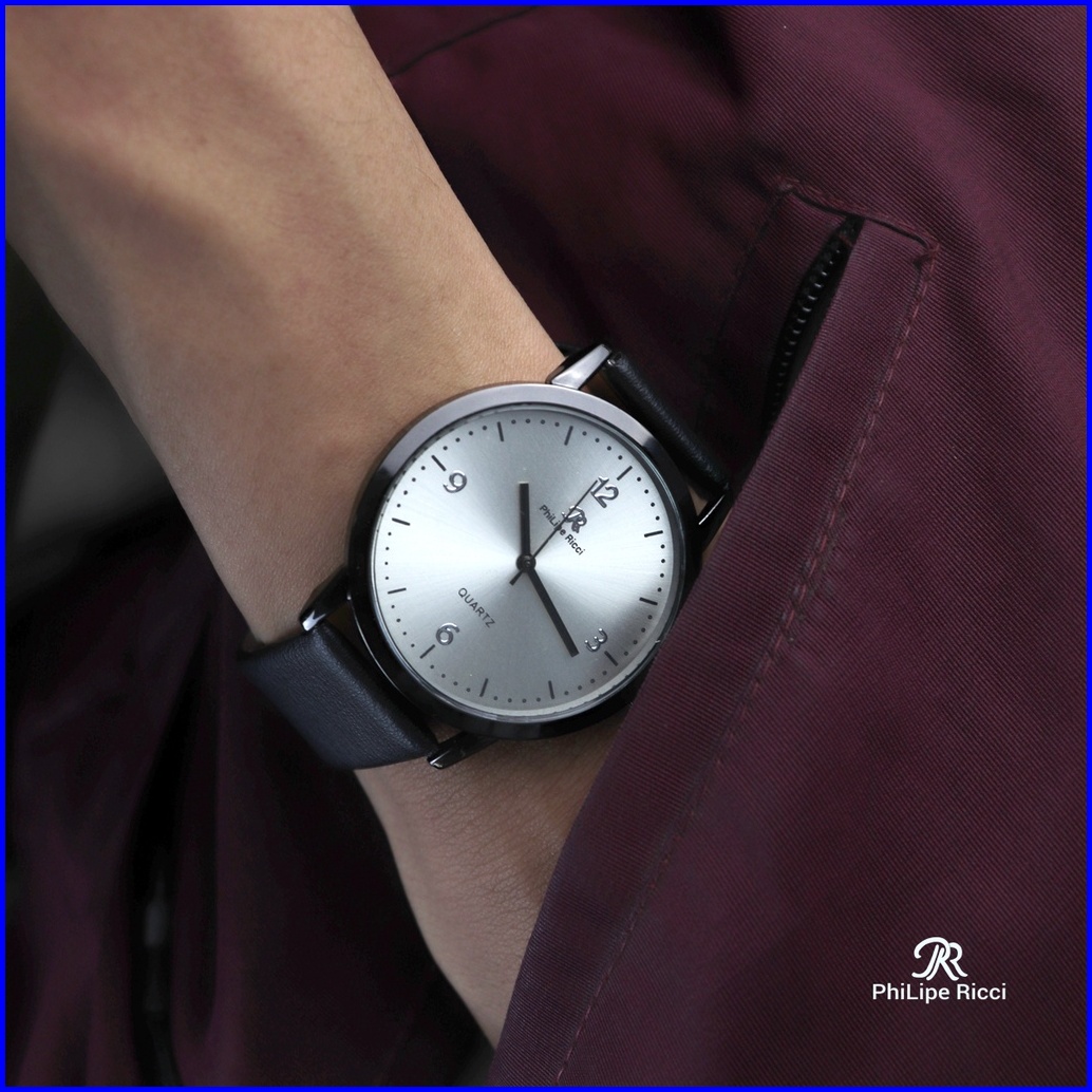Philipe Ricci Jam Tangan Pria Kulit Analog Quartz Dial Bulat Desain Simpel Strap Tali Leather 4231 Free Box