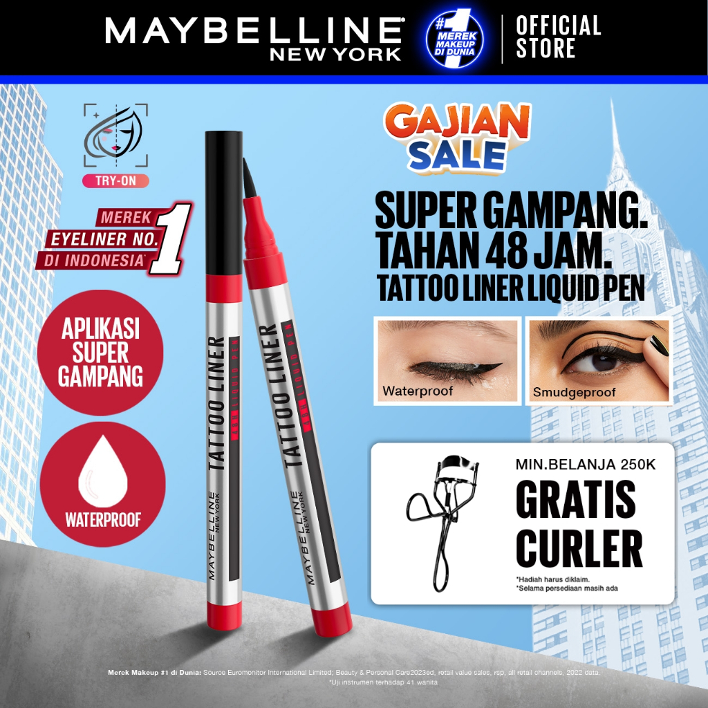 MAYBELLINE OFFICIAL Tattoo Liner 48H Liquid Pen Eyeliner Waterproof Make up Line Tattoo High Impact Tahan Lama 48 Jam Hi