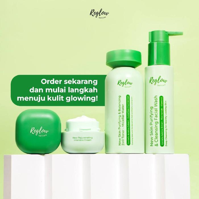 Paket Reglow Skincare Intensive Cream, Toner + Micellar Water, Facial Wash + Pouch & Sheet Mask -