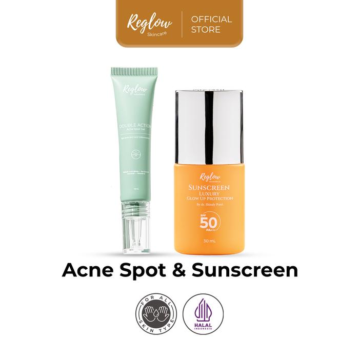 Reglow Sunscreen Luxury Glow Up Protection SPF 50 PA+++ Double Action Acne Spot Gel