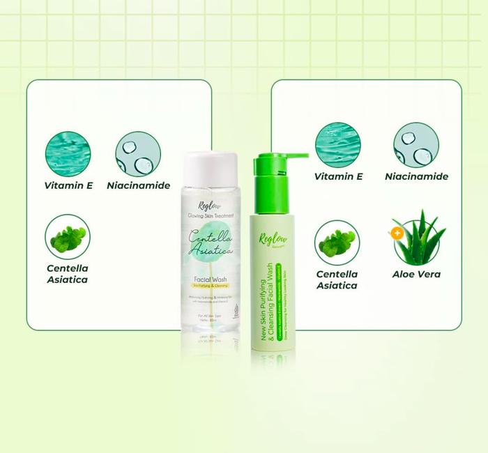Reglow Skincare Paket Facial Wash dan Day Cream dengan Kandungan AHA, Niacinamide, dan Centella