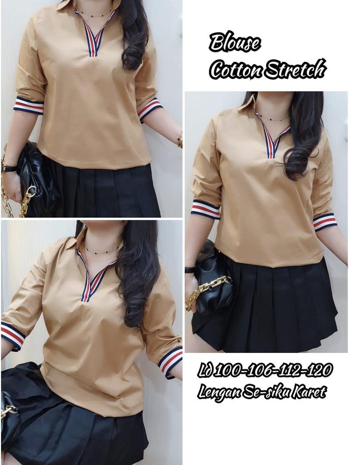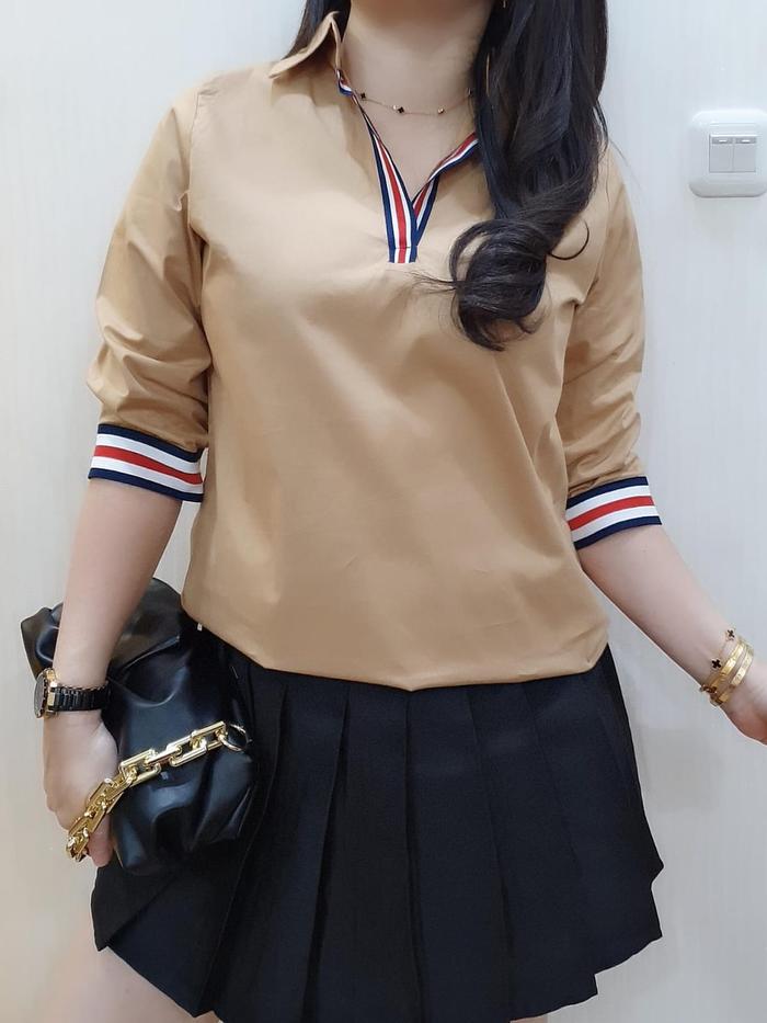 Kemeja Wanita Putih Casual Cotton Stretch V-Neck Kemeja Korea Kemeja Putih Baju Katun - Atasan Putih Hitam Kerah Cewek T