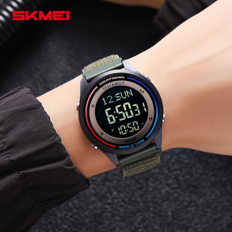 SKMEI 2412 Jam Tangan Pria Digital Sport World Time Tali Nilon MGOS