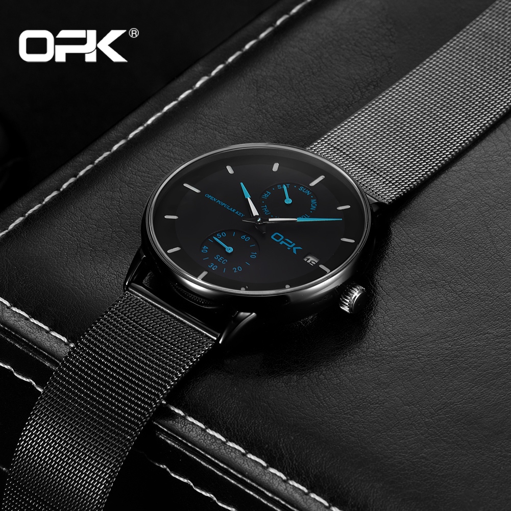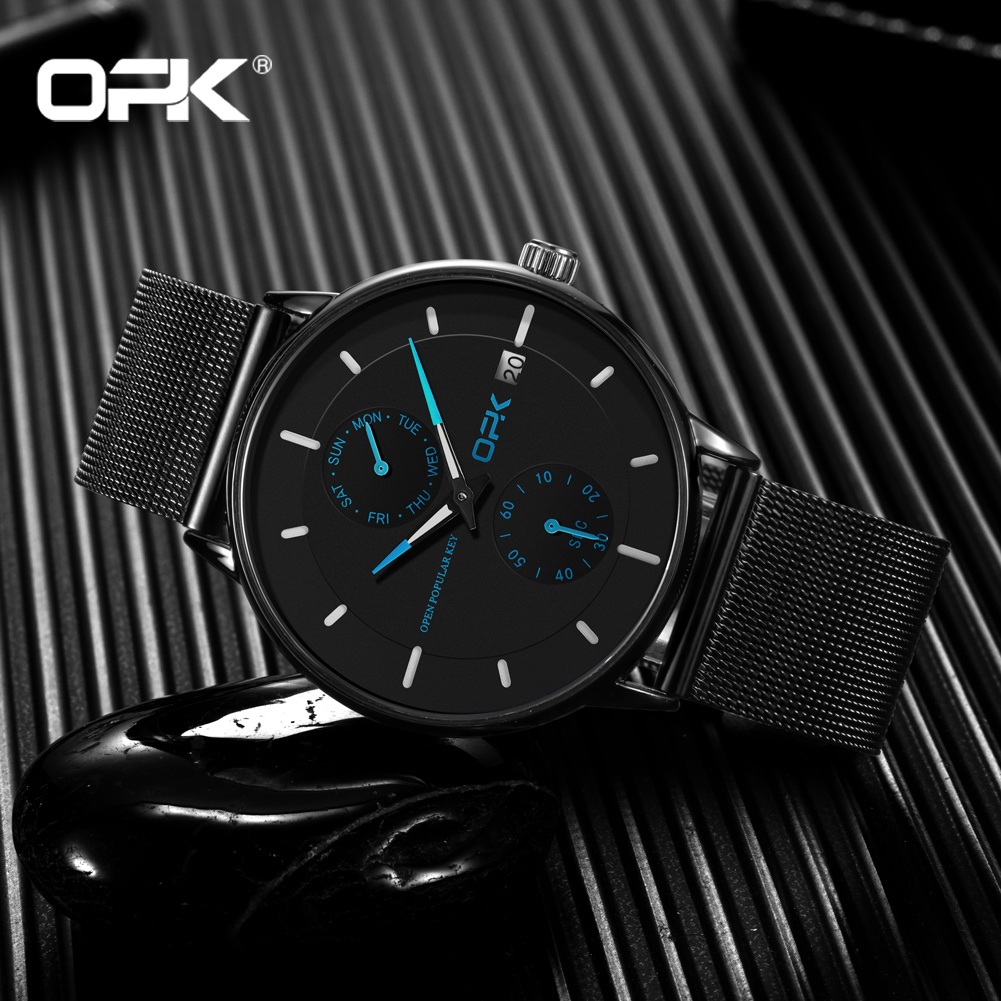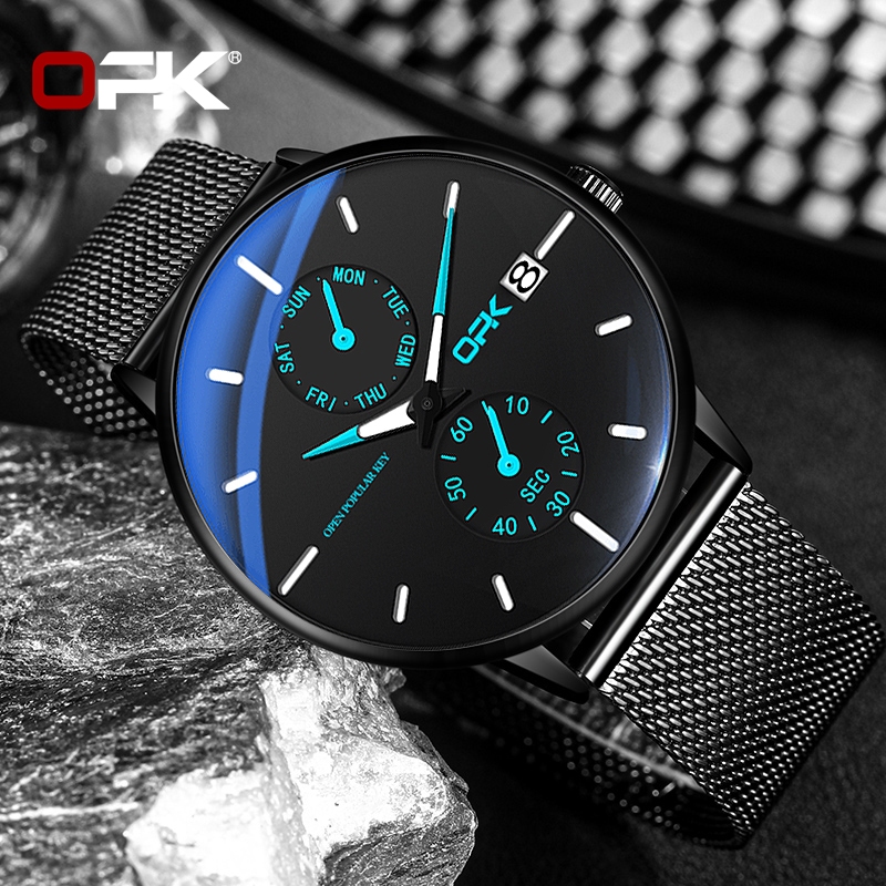 OPK Jam Tangan Pria Anti Air Original Unik Terbaru 2025 Bisnis Stainless Steel Luminous Kalender Analog Fashion Men Watch Model 8116