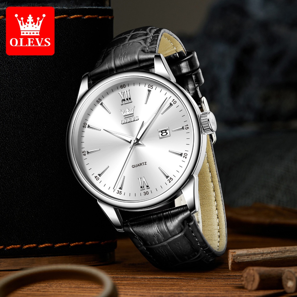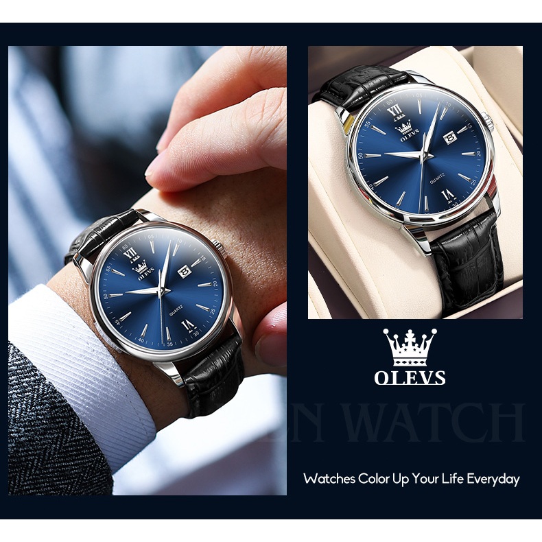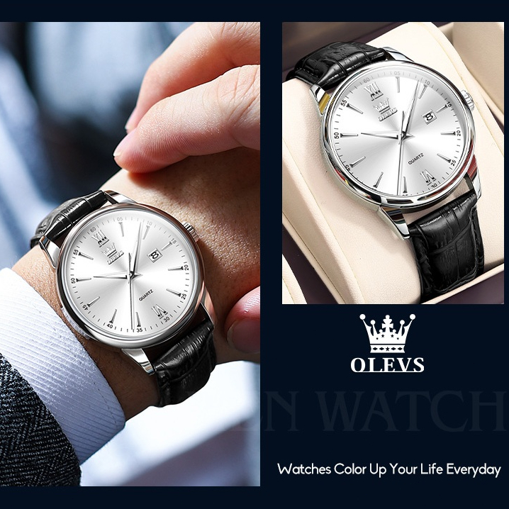 OLEVS Jam Tangan Pria Original Anti Air Cowok Kulit Kalender Analog Arloji Bisnis Fashion Men Watch Ready Stock Mode 5009