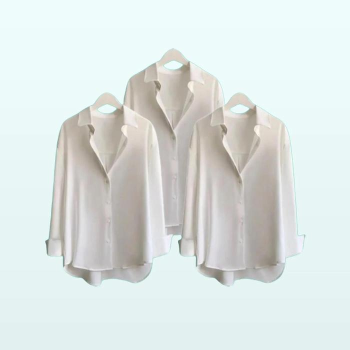 Paket 3 Pcs 90 Ribu Atasan Kemeja Wanita Polos Lengan Panjang Blouse Casual Formal Baju Putih Kerja Kantor Katun Cewek -