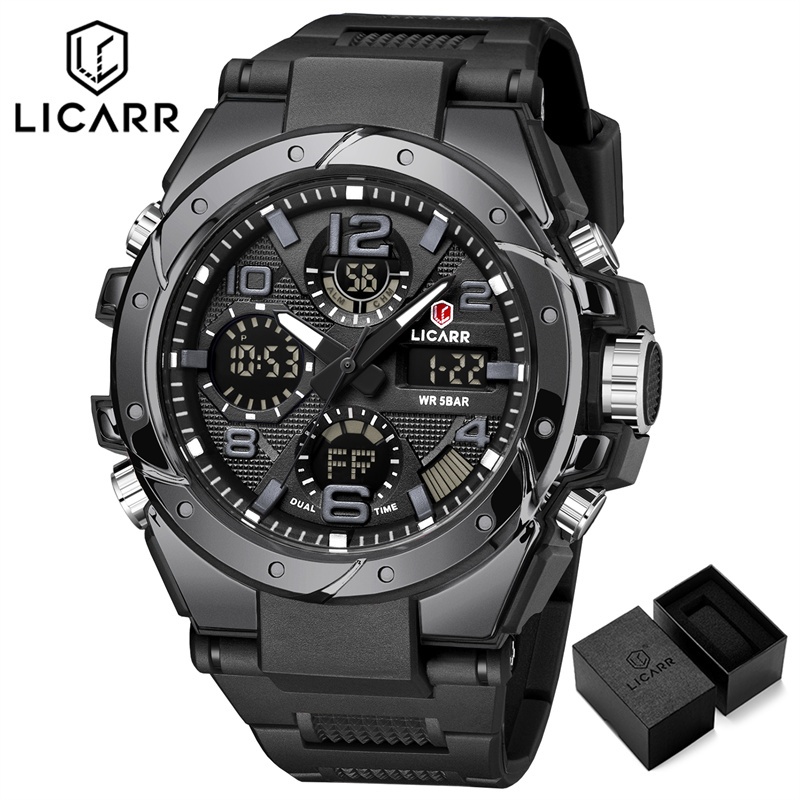 LICARR Jam Tangan Pria Merek Fashion Analog Digital Santai Kuarsa Anti Air Olahraga Multifungsi Jam Tangan Cowok Original 9515