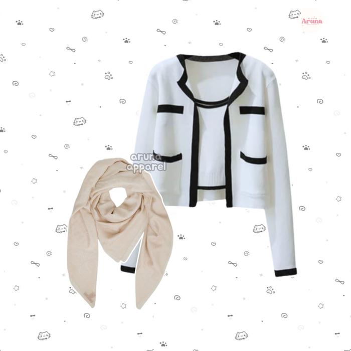 Aruna - 3In1 One Set Outfit Nongki Wanita Korean (Hijab , Cardi , Rok) Setelan Cewek Kuliah Aa398 - Hijab + Cardi
