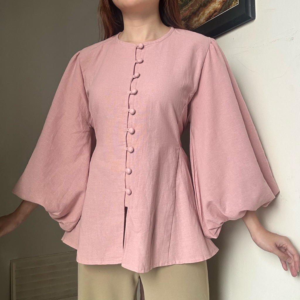 Astrid Top Atasan kemeja blouse wanita kerja linen tangan balon panjang korean style by biel the label