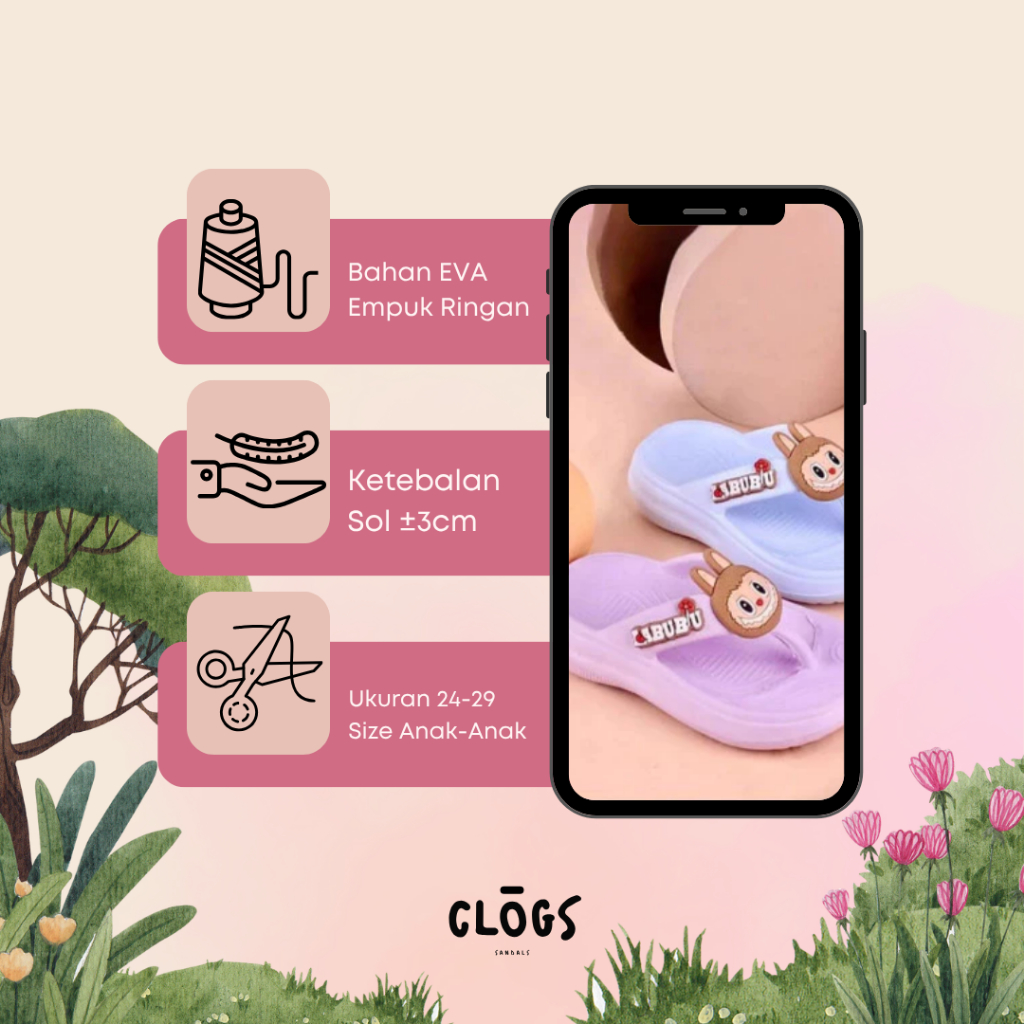 [Star] SC - Sandal Jepit Eva Anak Cewek Hias Labubu Super Keren Kekinian Lucu