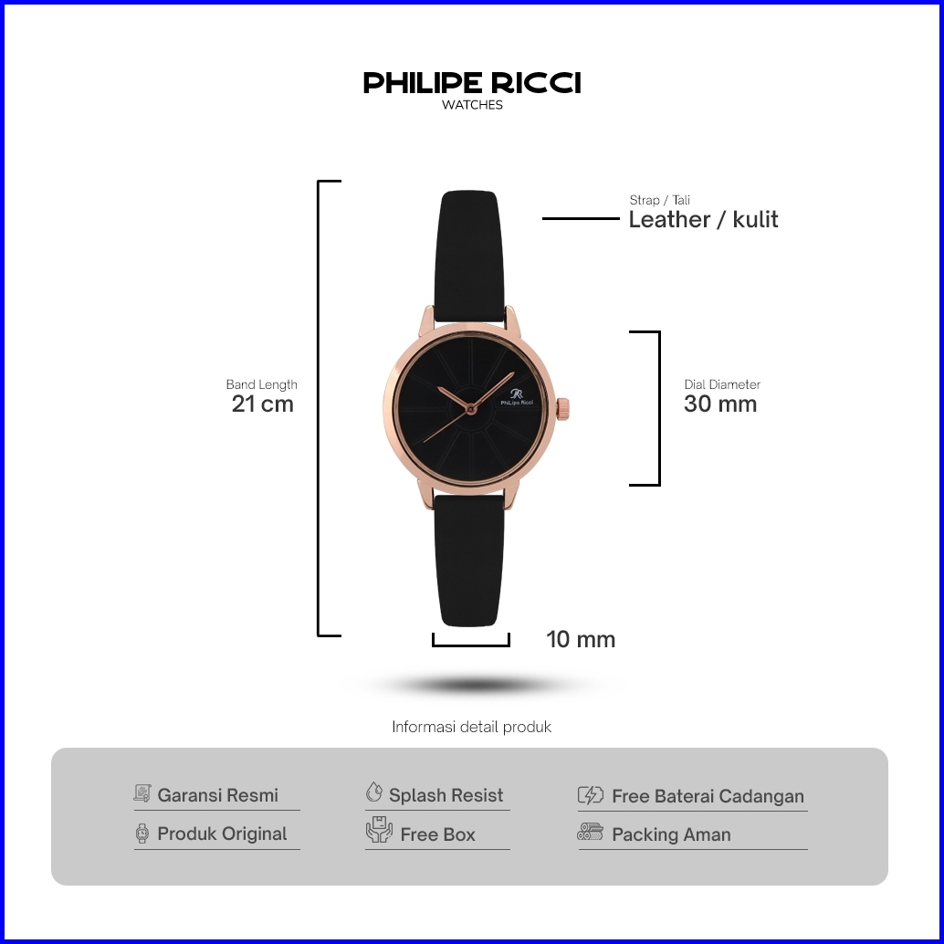 Philipe Ricci Jam Tangan Wanita Kulit Kecil Simple Korea Terbaru Original Minimalis 8891 Free Box