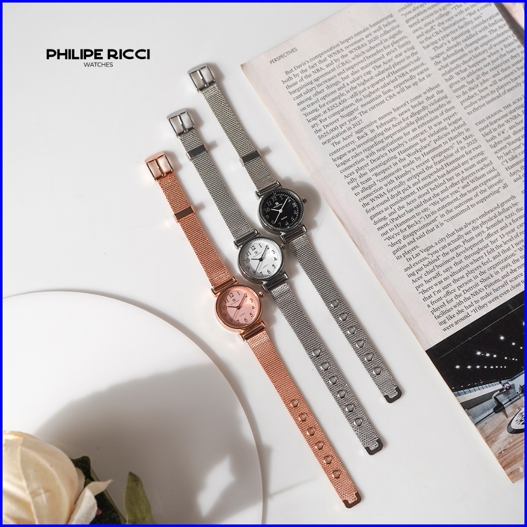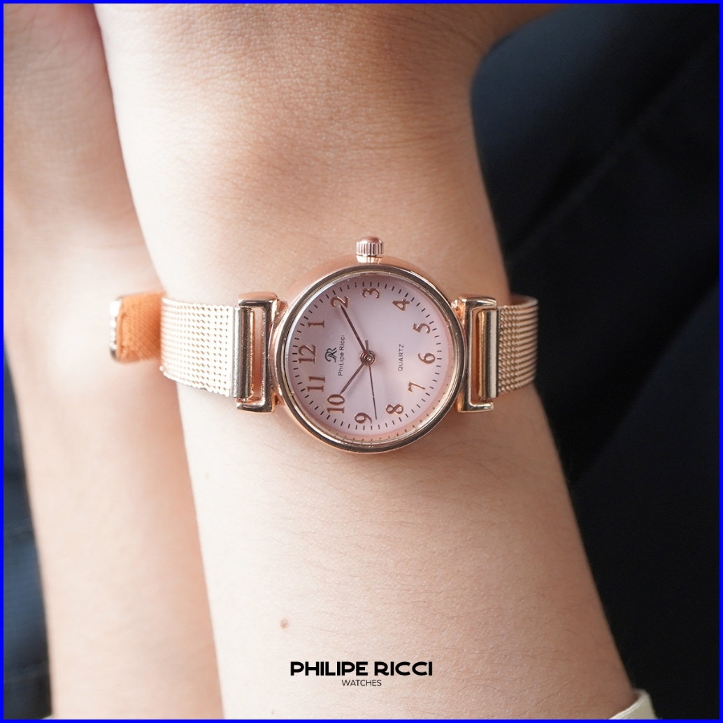 Philipe Ricci Jam Tangan Wanita Rantai Kecil Terbaru Gaya Korea Rose Imut 5837a Free Baterai
