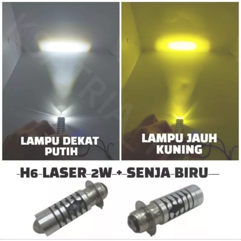 Lampu Utama Led H6 Laser + Senja Biru - Lampu Depan Tipe Laser Dekat Putih Jauh Kuning- Lampu Utama Motor Jauh Dekat - H