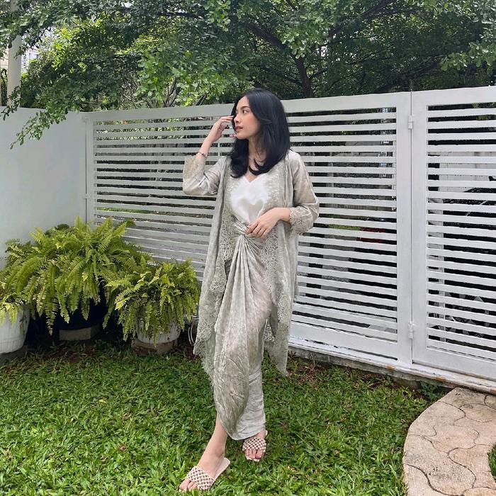 Set Kebaya Batik Viscos Series Nagita Set Lilit Dress Kondangan - Sage, Outer Only