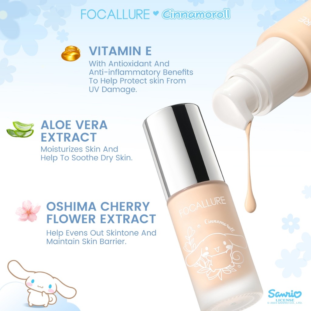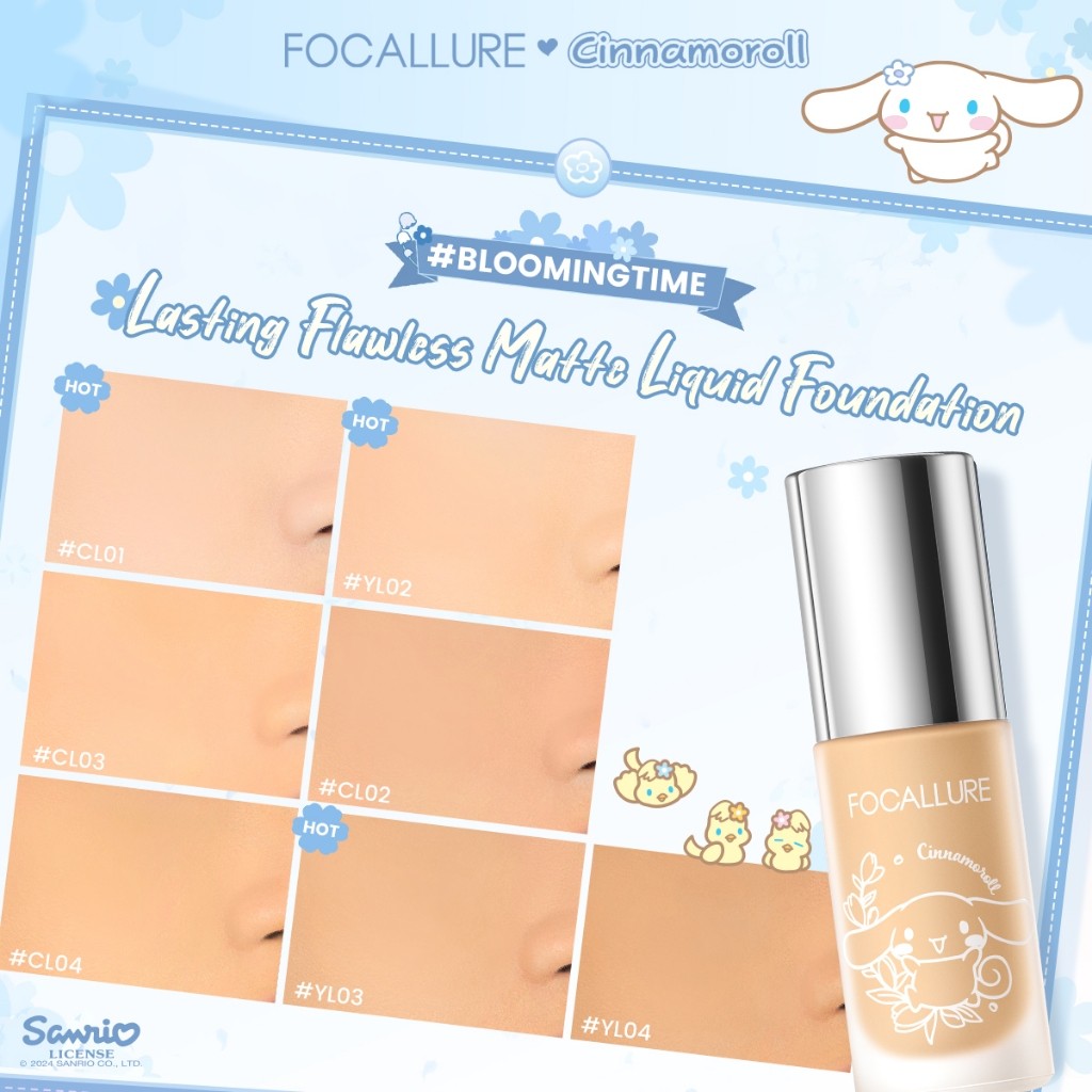 FOCALLURE X Sanrio Matte Liquid Foundation Lasting Flawless Waterproof Lightweight Oil-control #BloomingTime