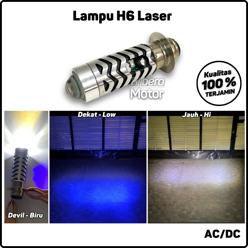 Lampu utama LED H6 Laser jauh dekat 2 Warna Putih Kuning Biru / Lampu Depan HID Laser D2