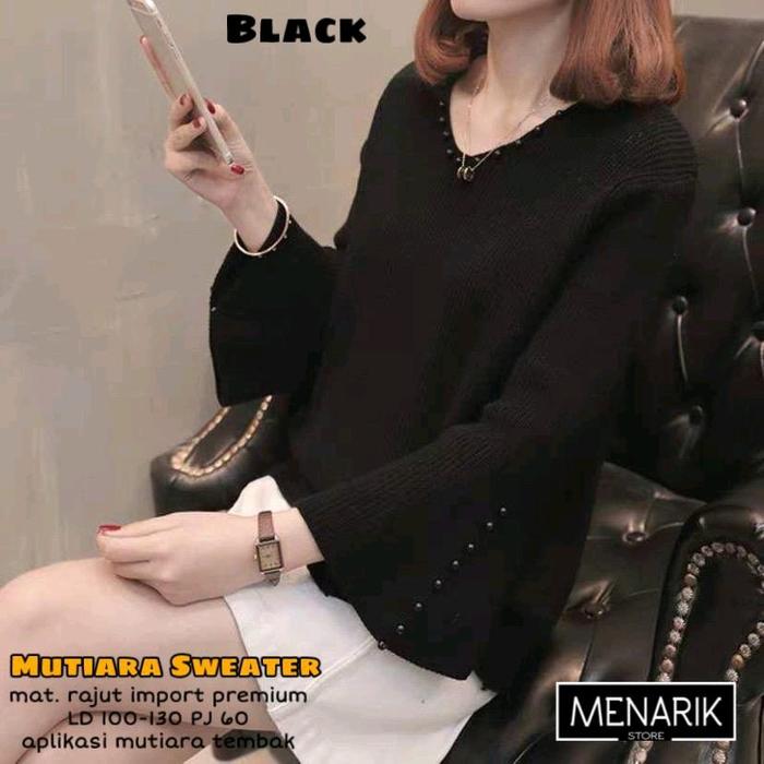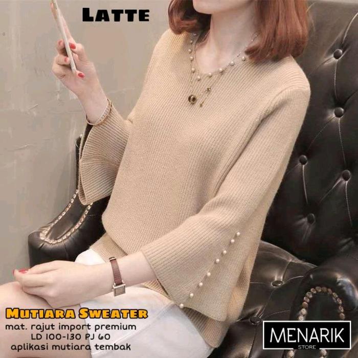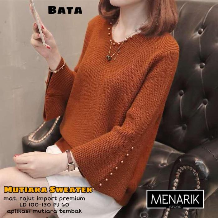 Blouse Rajut Import Premium - Atasan Wanita Lengan Panjang Mutiara Trendy Top By Menarik - Ungu