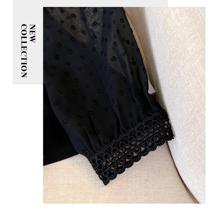 Hitam Oversize Panjang Atasan Kemeja Variasi Burkat Ruffle Blouse Import Baju Casual Wanita Top Light Linen - Black, Fre