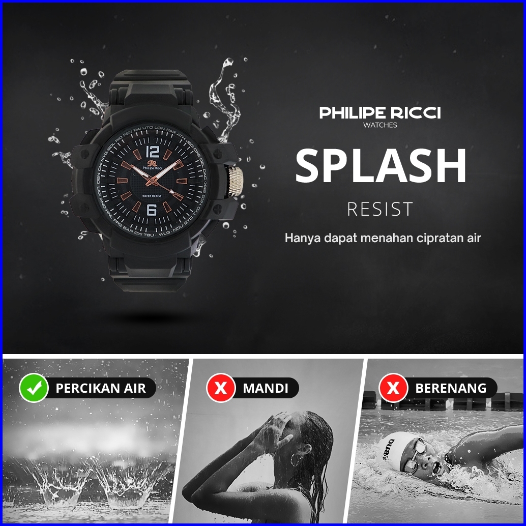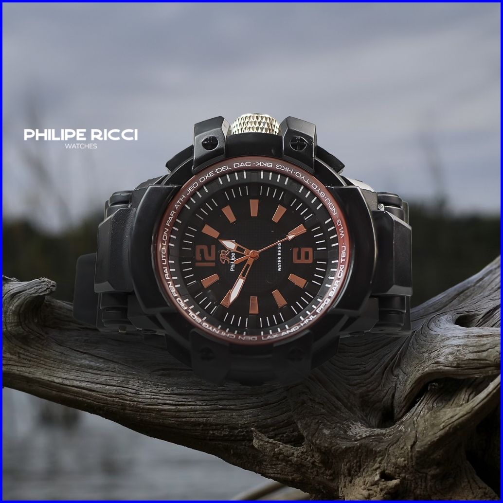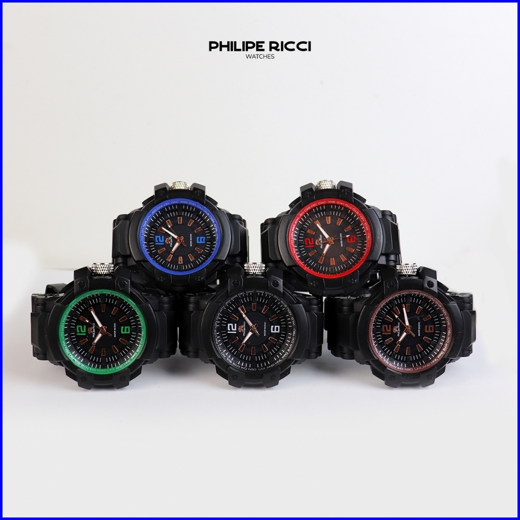 Philipe Ricci Jam Tangan Pria Sport Diameter Besar Strap Tali Karet Model Simpel 1921t Men Sporty Watches Free Box