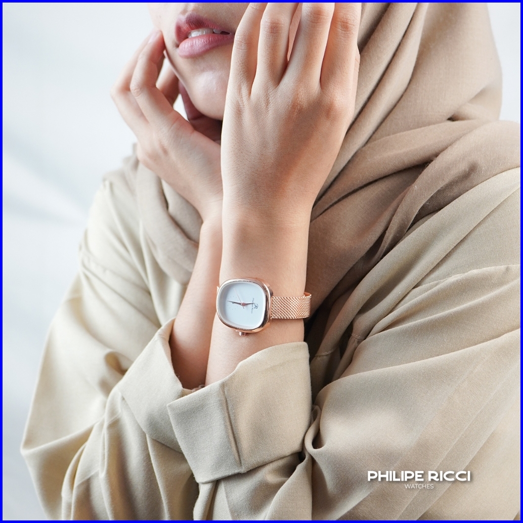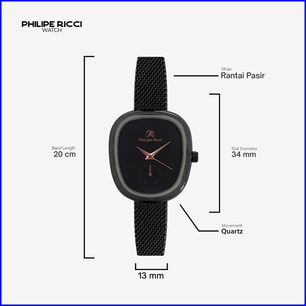 Philipe Ricci Jam Tangan Wanita Korea Kecil Rantai Pasir Original 7489 Mini Rose Hitam