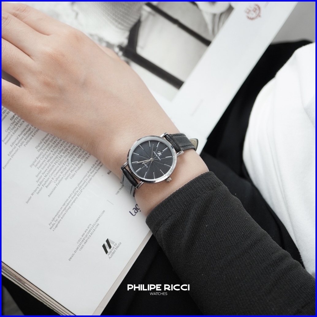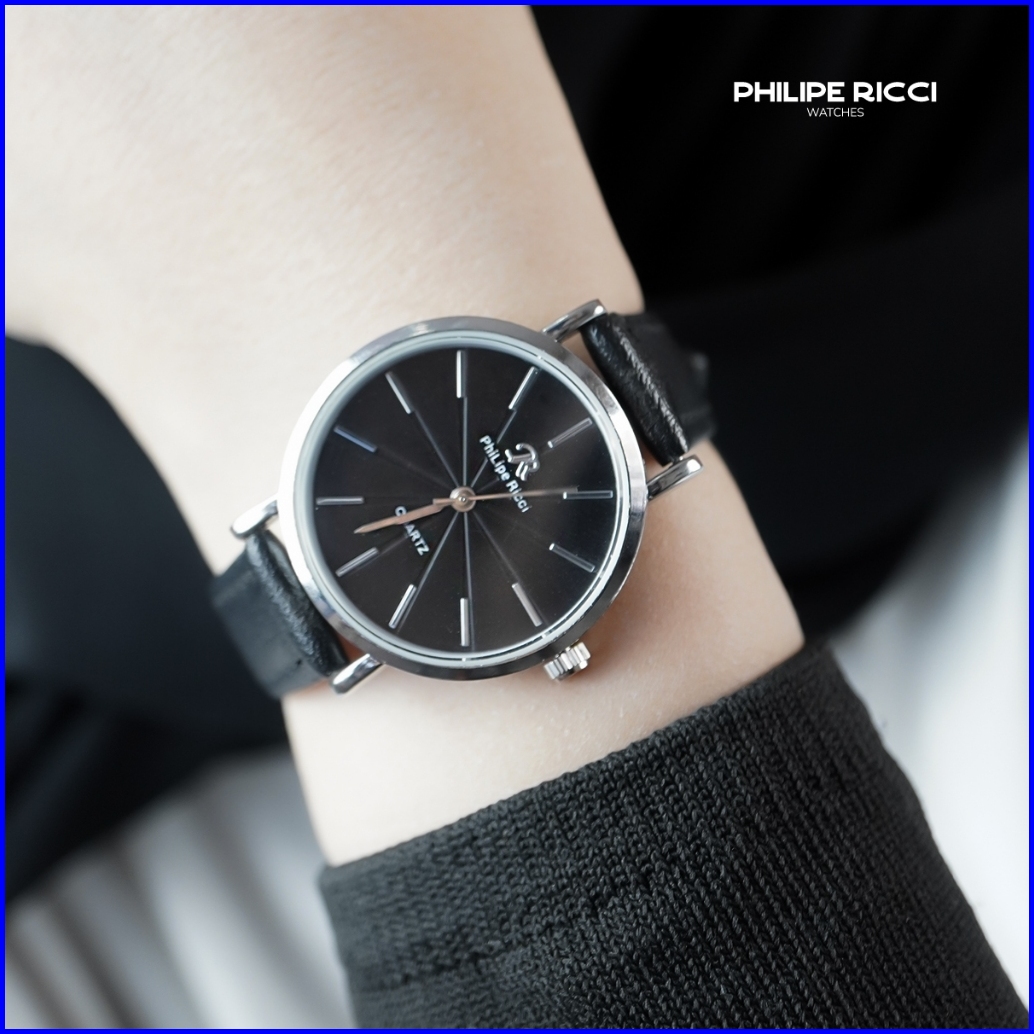 Philipe Ricci Jam Tangan Wanita Kulit Hitam Kecil Gaya Trendy Original 8686g Fashion Women Watches