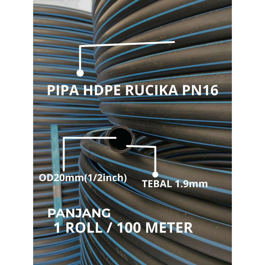 Pipa HDPE RUCIKA 1/2 Inch 20mm PN16 Fleksibel Tahan Tekanan 16 BAR Air & Korosi 1 Roll 100 Meter
