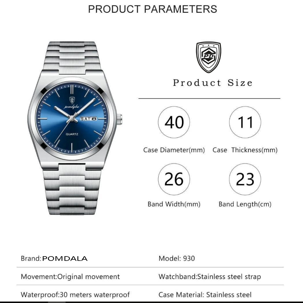Jam Tangan Pria Original Kuarsa Mewah Sport Tahan Air Bercahaya Tanggal Minggu Stainless Steel