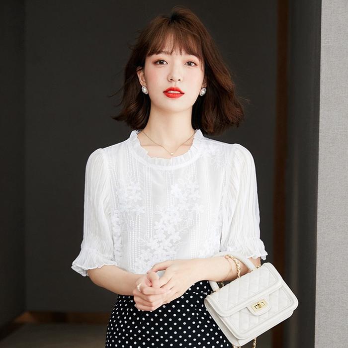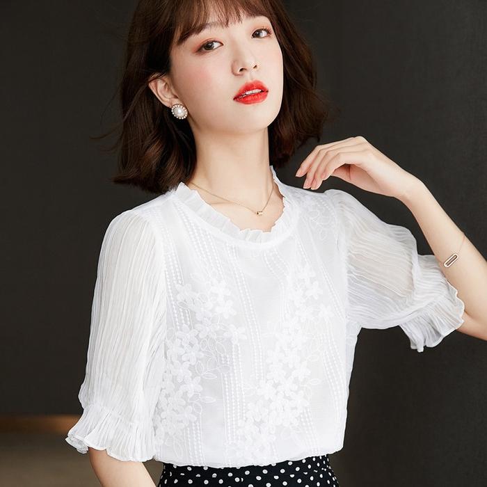 Papadi Blouse Wanita Putih Lengan Panjang Lengan Pendek Bahan Sifon Korean Style Kekinian Ib0024 Lembut Tangan Kerja Nya