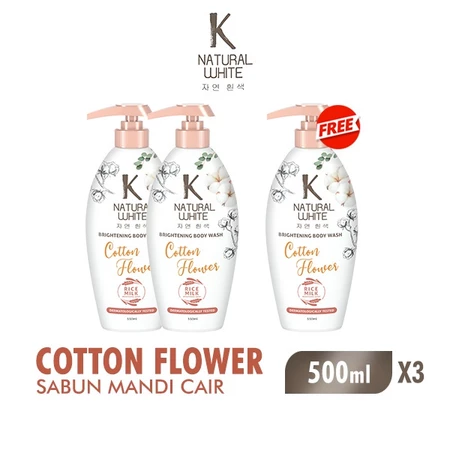 GRATIS ONGKIR K Natural White Sabun Mandi Cair Cotton Flower Botol 500 ml x3