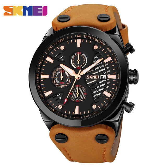 SKMEI 9282 Jam Tangan Pria Analog Chronograph Tali Kulit MGOS
