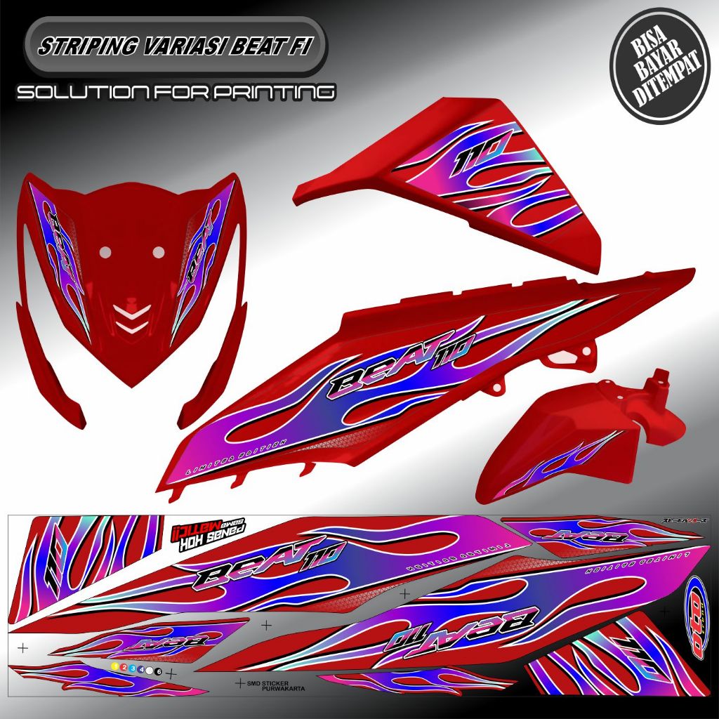[Star] STRIPING STICKER VARIASI HONDA BEAT FI MOTIF API TWO TONE