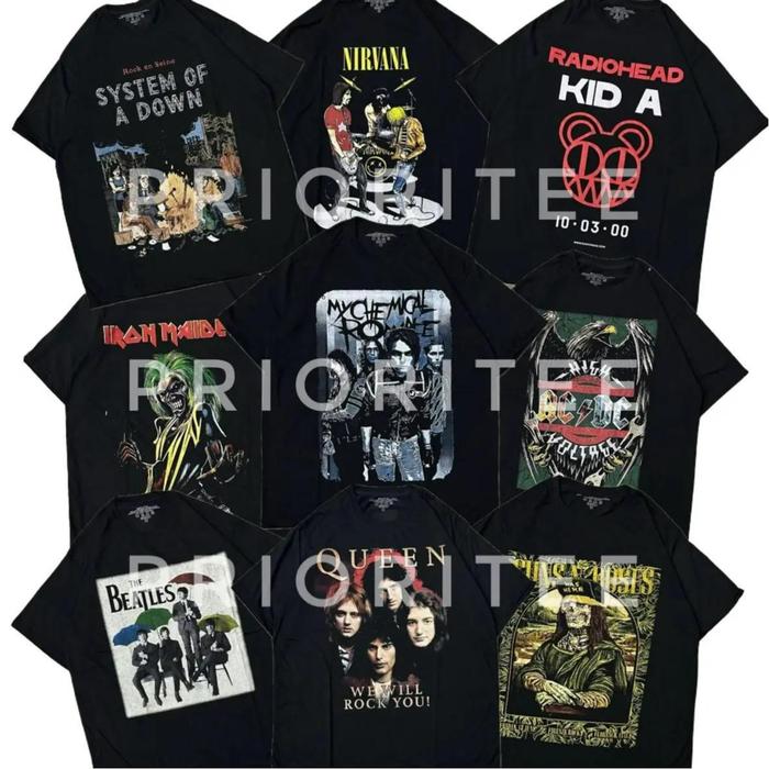 4 PCS KAOS DISTRO BAND PAKET MURAH SEMI KATUN baju distro Regular Fit Sablon - 4 Pcs Random L