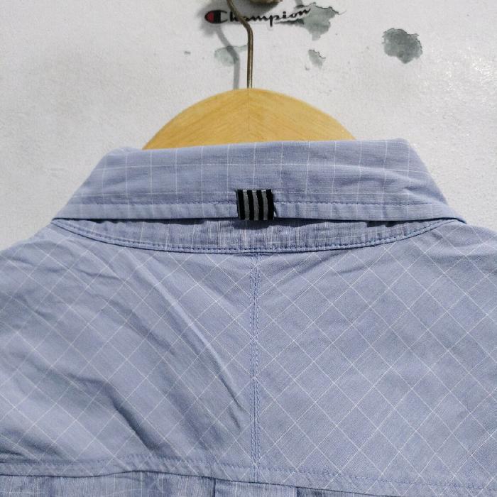Kemeja Adidas warna Babyblue model Lengan Pendek motif garis samar