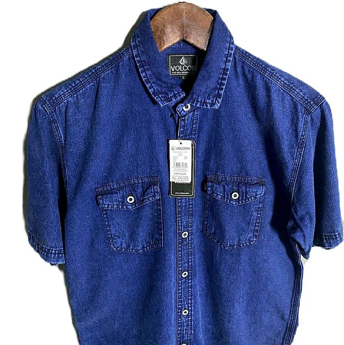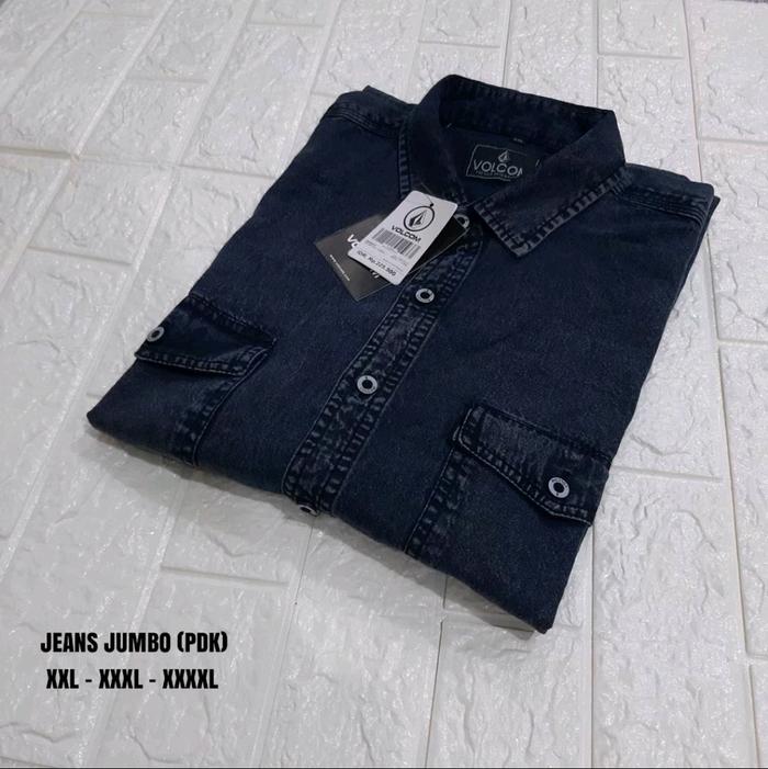 Kemeja Jeans Lengan Pendek Pria Dewasa Premium Distro Baju denim kekinian Nyaman dipakai Casual Katun - Black snow M