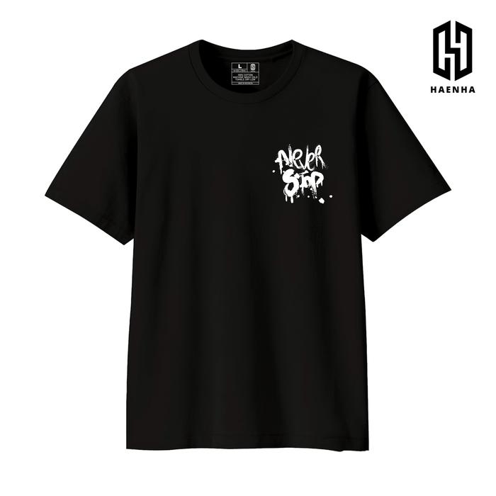HAENHA Never Stop Baju Kaos Distro T shirt Sablon Unisex - Hitam S
