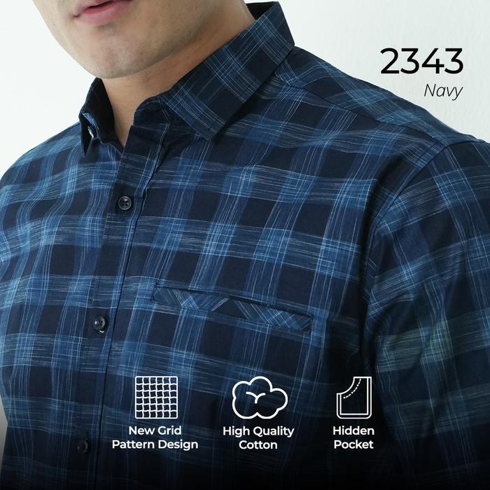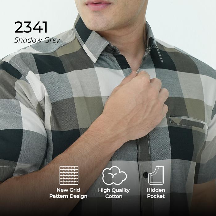 Casella Kemeja Chicago Pria Lengan Pendek Exclusive Motif Kotak Baju Casual - 2341 Shadow Grey S