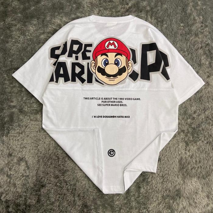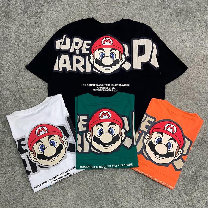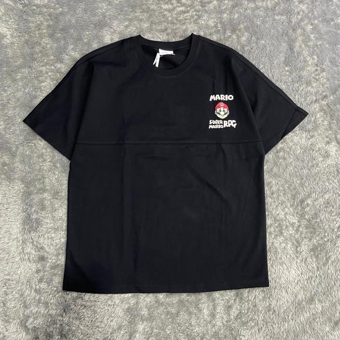 2601 Baju Kaos Pria Wanita T-shirt Import "Mario Bross" Distro Dewasa Atasan Garis - Hitam 2XL 58-65kg