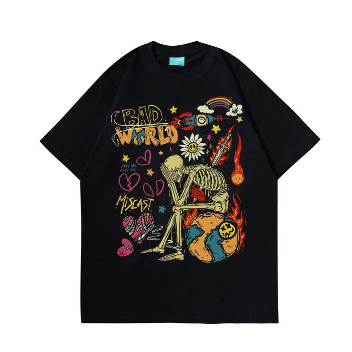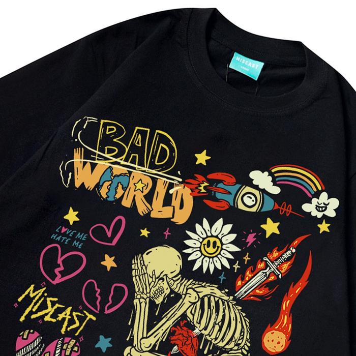Miscast - Oversized Kaos - Bad World - Hitam Combed Katun kaos skena oversize vintage bajudistro T-Shirt Pendek - M