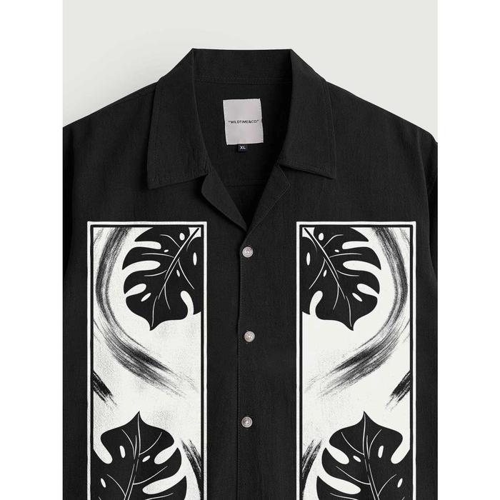 Wildtime&Co Baju Pria Oversize Motif Monstera Series Linen Hitam Distro Kaos Atasan Color Choose - Black M