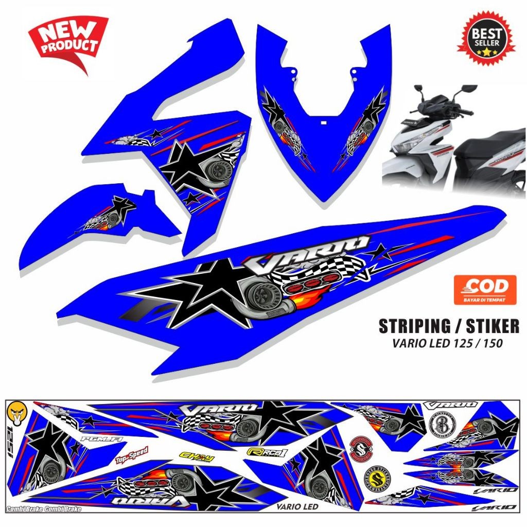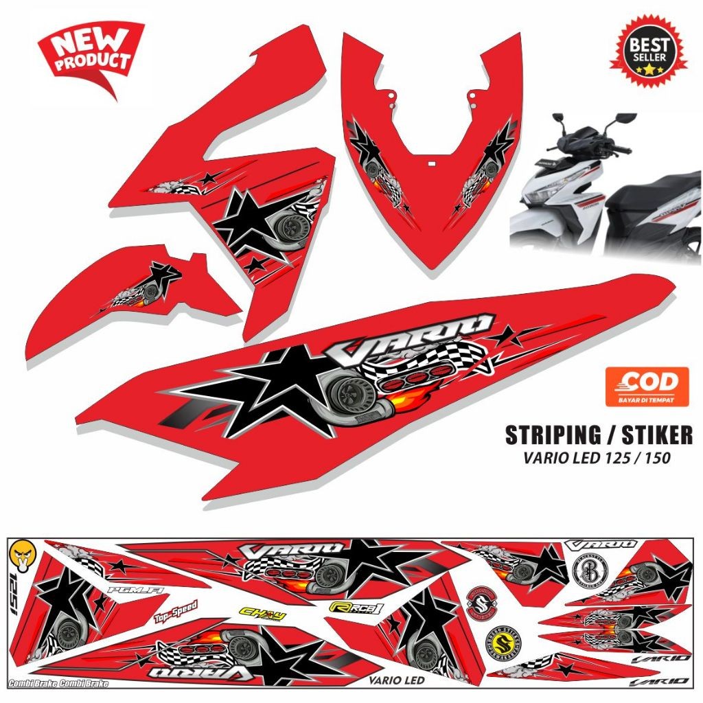 [Star] STICKER STRIPING STICKER VARIASI MOTIP NEW HONDA VARIO LED OLD 125/150 POLET TERBARU LIKE NEW KJ66