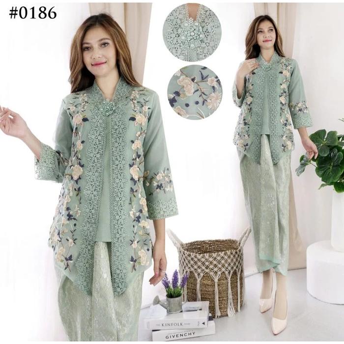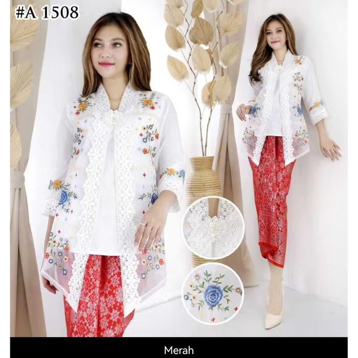 Paling Laris Setelan Kebaya Alexuez Linen Bordir Organdi+Rok Songket Lilit Size S-5L Ld 118 - Set 1508, S