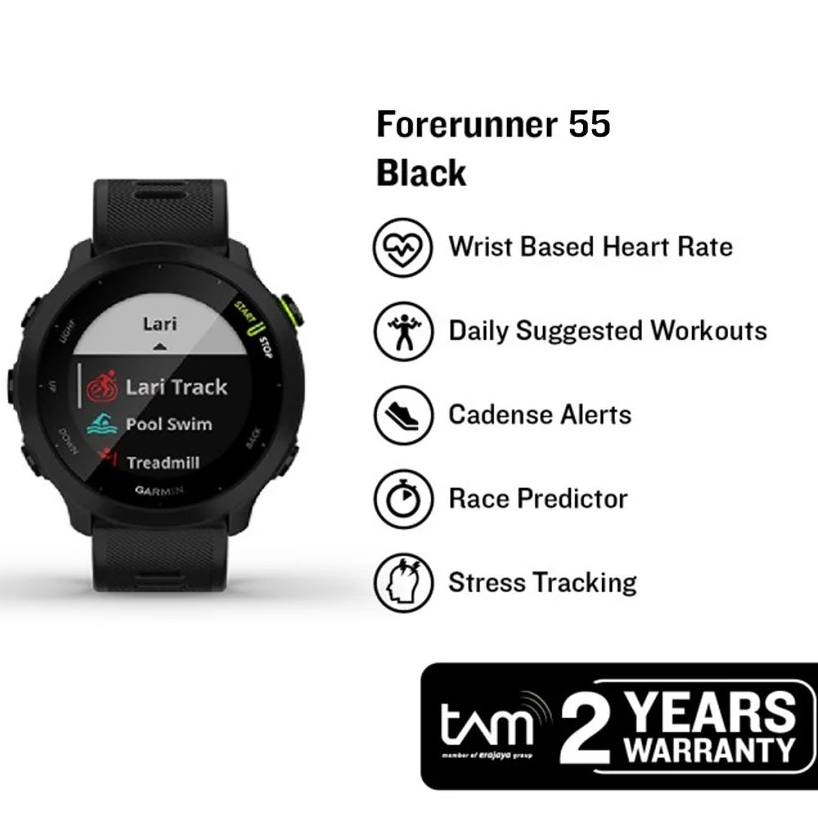 GARMIN Forerunner 55 - Black GPS Smartwatch Garansi TAM 2 Tahun